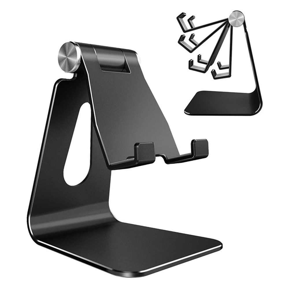 Aluminum alloy material, smooth edge, simple, lightweight, perfectly works with your smart phones. Perfect for multi-angle standing positions,easily adjusts stand angle,supporting both vertical and horizontal viewing. A reserved hole for your charging in the front and a line hole for your cable,more convenient and tidy, charging while using,never worry about low-battery alert. Play a good role in your office, kitchen, nightstand, dining table. Your artwork can be laser engraved on it.