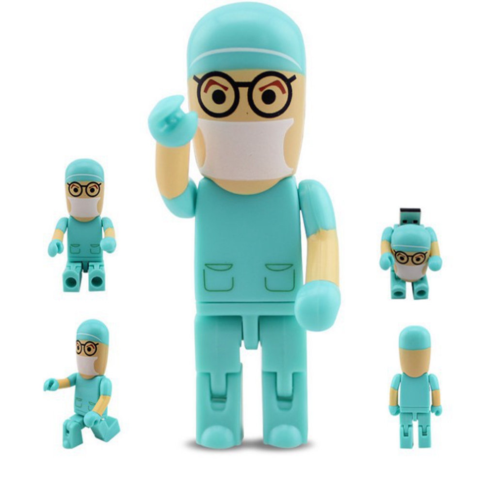 Novelty doctor shaped USB flash drive, 8GB real capacity,good choice for using or as gifts for surgeon nurse doctor. USB 2.0 connection,support Hot plug and Play.Fast speed in write/read transfer.No need to install any software. Store and transfer photos, videos, songs and other files between pc computers. Welcome your brand logo on it.