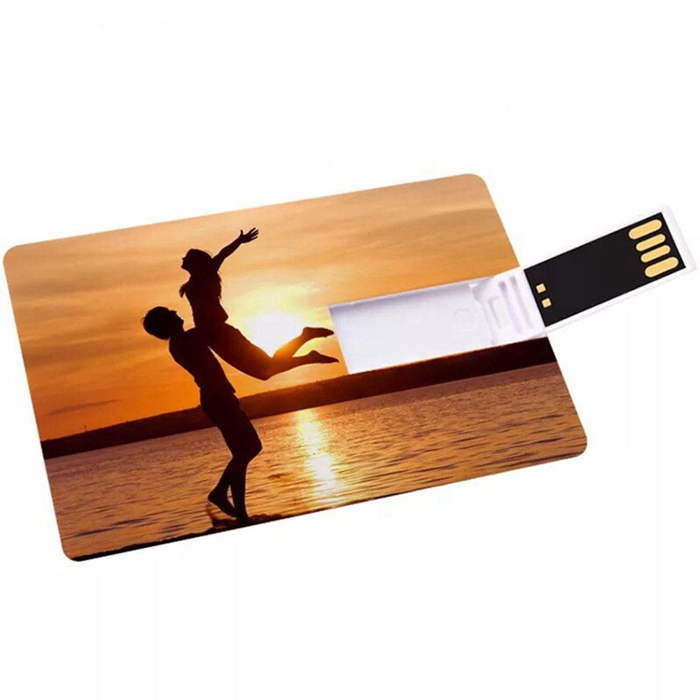 Credit card design USB flash drives, 16GB real capacity. USB 2.0 connection, support Hot plug and Play.Fast speed in write/read transfer.No need to install any software. Store and transfer photos, videos, songs and other files between pc computers. Ideal for product promotion or branding, imprint your full color logo on both sides