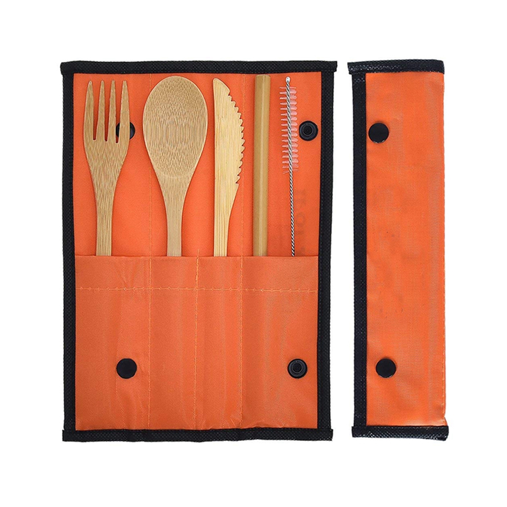 100% Bamboo Utensils, You don¡¯t need to worry about BPA.This bamboo cutlery set is made for 100% bamboo and health for your family! The lightweight pouch keeps the 4 bamboo with 1 straw brush travel utensils together and is easy to carry. This travel cutlery set is perfect for travel. Bamboo has incredible tensile strength, making this wooden cutlery set reliable and long lasting.