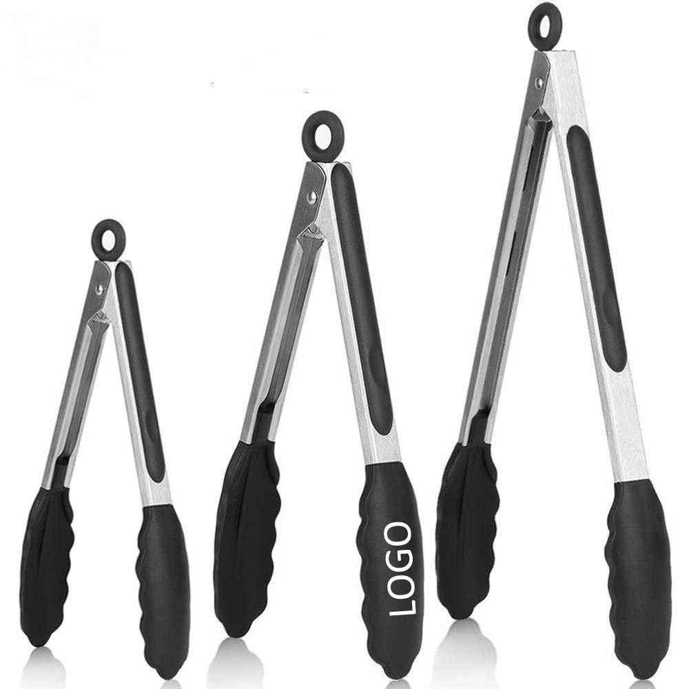 This 9inch tongs are made from a thick, corrosion resistant 304 stainless steel for unbeatable strength and premium construction.Matching with a premium Food Grade Silicone that won't scratch your non-stick pans or grill grates! Basic kitchen utensil, perfect for basic kitchen tasks, indoor or outdoor use, great for grilling corn, flipping burgers, serving salad, cutting roast meat, or used as BBQ turners and much more. We have 3 size available: 7inch, 9inch, 12inch. The price is based on 9inch. You can custom laser logo on the tongs.