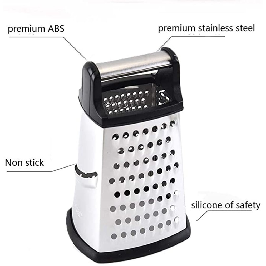 One simple kitchen tool that will completely improve the taste and texture of what you prepare ! This 4 in 1 all purpose box grater is made of sharp and high quality stainless steel . With minimal effort you can perfectly shred and slice cheeses, vegetables, lemon, nutmeg, ginger, garlic & endless other uses. Get creative and make dinner exciting again