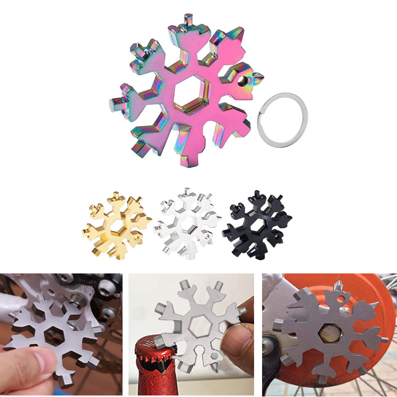 Our snowflake multi-tools can be used as hexagonal wrenches(3mm-9mm), Allen wrenches (7mm-16mm), slotted screwdriver,#2 and #3 Phillips screwdrivers, a flat head screwdriver, box opener, bottle opener.You can use it for outdoor adventures, camping, snowboarding,multi use tool. Made of premium stainless steel, our snowflake multi-tools are more durable and sturdy. Used to open the beer bottle, turn the screw, repair bicycle and toys,furniture assembly and maintenance. You can give it to dad, husband, boyfriend, it's the best Christmas gift for men!