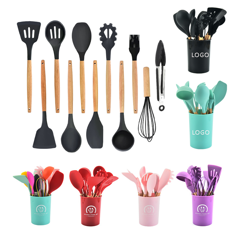 Our silicone utensils is made of food-grade silicone, bpa-free, allowing for daliy cooking while protecting your coated cookware, you don’t have to worry about the health of your families. Including 12 pcs cooking tools that will suit all your cooking and baking needs. Such as Spatula utensil, Spoon,Soup Ladle,Turner,Spoon Spatula,Slotted Spoon,Slotted Turner,Pasta Serving,Basting Bush,Whisk,Tong. Our silicone cooking utensils set with holder will satisfy all your needs for cooking! Any occasion like birthday, mother's day and wedding party,housewarming, christmas day or thanksgiving - that will be the most useful present.They can using safely,and we eatting happy!!