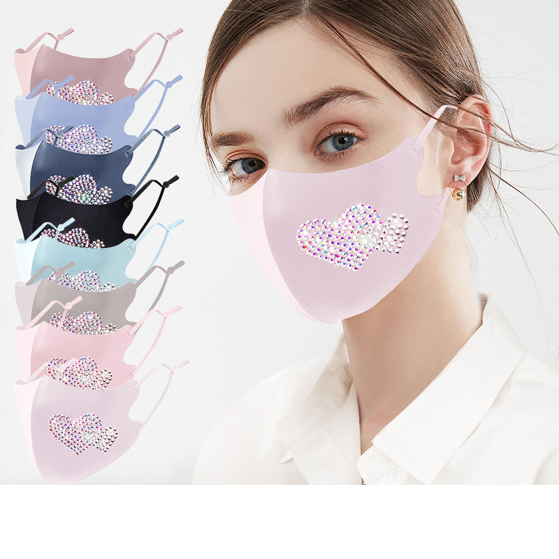 Made of single layer cooling fabric mask.The fabric is soft, stretchable, comfortable and breathable. The nose to the chin in all day comfort. Perfect for home, office or for outside protection from sand, bugs, dust, and the nasty particles flying around.The price is based on size 2" x 2" rhinestone logo and it will be different based on your logo. A wonderful gift for girlfriend, wife, sister, friends.