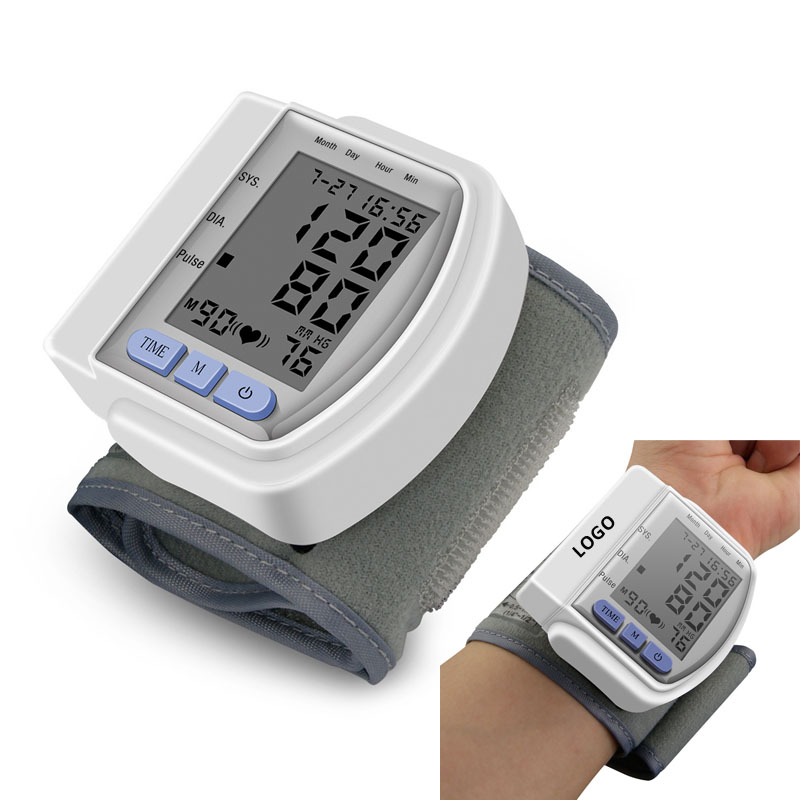 Quick and accurate measurement of blood pressure and pulse. Wrist type model with simple operation with just one button push. Perfect for at-home use, this advanced wrist-type blood pressure monitor features a convenient arm cuff which is automatically inflated by the air pump. Wrist Circumference: 135-195 mm. No operation in 1 minutes automatic shutdown. Simultaneous readout of systolic/diastolic pressure and pulse rate. 60 memory recall. Pressure: 20-280 mmHg; Pulse Rate: 40-165 beats / min. Accuracy as below: Pressure: within 3 mmHg. Power supply: 2 x AAA batteries(not included)