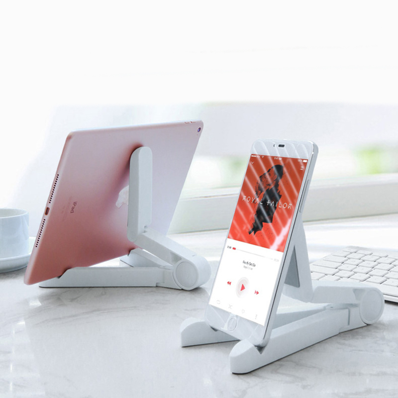 This foldable and adjustable plastic desktop stand is suitable for any mobile smartphone, tablet, or cell phone and provides the perfect viewing angle. It frees up your hands and offers a more comfortable experience. It is perfect for presentations, reading, recording videos, or surfing the web. This lightweight and durable stand can also fold flat, making it easy to take with you on the go.