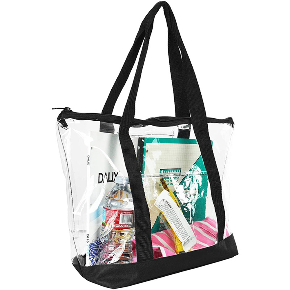This clear security tote comes with a clear front pocket. Great for security programs as contents of the bag are visible -Ideal for airports, ball parks and outdoor activities. This must-have carry-all is a great giveaway at your next event!