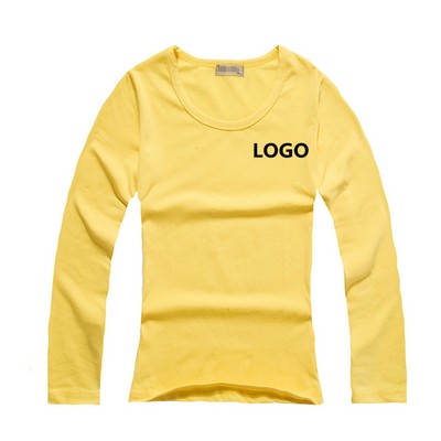 This Long Sleeve T-Shirt is made of 85/10/5 cotton/polyester/Spandex. It is side-seamed with a contoured body for a feminine fit and has open hem cuffs. Customize with a brand logo and add a stylish piece of active wear to your wardrobe today!