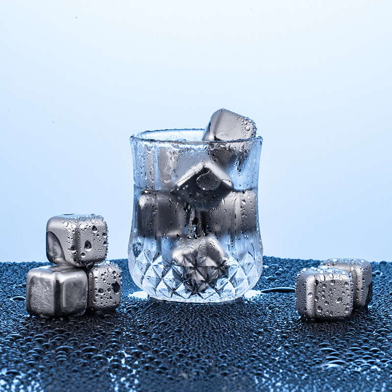 These FDA compliant food-grade stainless steel ice cubes are designed to stay cold longer than ice. 8 cubes/package; great for bars, restaurants, trade shows and conventions. Customize yours today