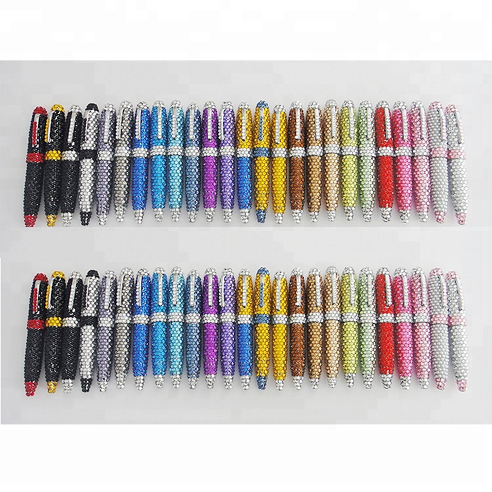 So bling items! Covered in bright and eye- catching colored rhinestones. Each individual pen measures 4.25 inches long, these pens are made of great quality, each piece is well crafted to last you a long time. Great party favor at your next party. Every kid's dream pen. Each pen with a small hangtag for your logo can be printed on hangtag