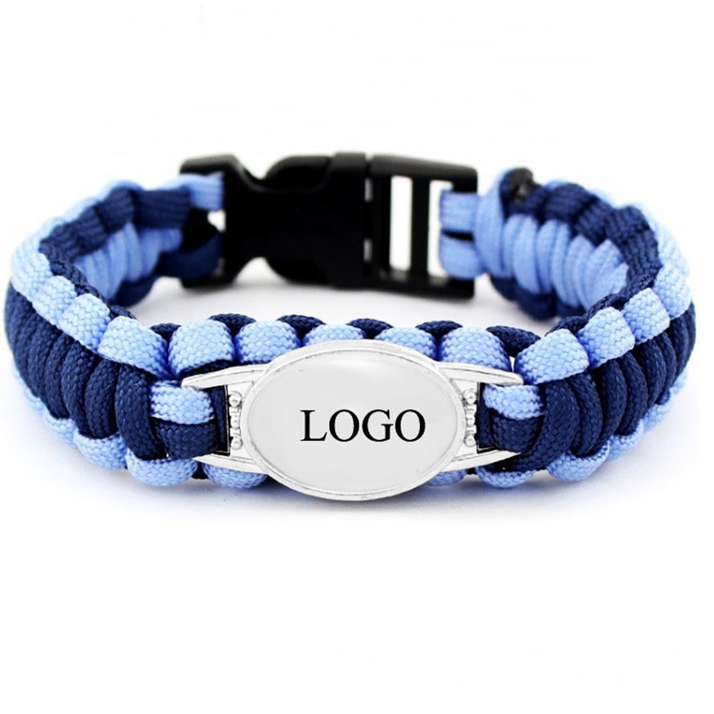 Paracord bracelet made from strong pulling force strap (over 280 pounds). Unravel the bracelet to deploy the paracord for your use in survival and emergency situations. which is a whistle when you unravel it. Perfect for camping and outdoor activities like hiking, trekking, mountain and rock climbing.Welcome your logo on it.