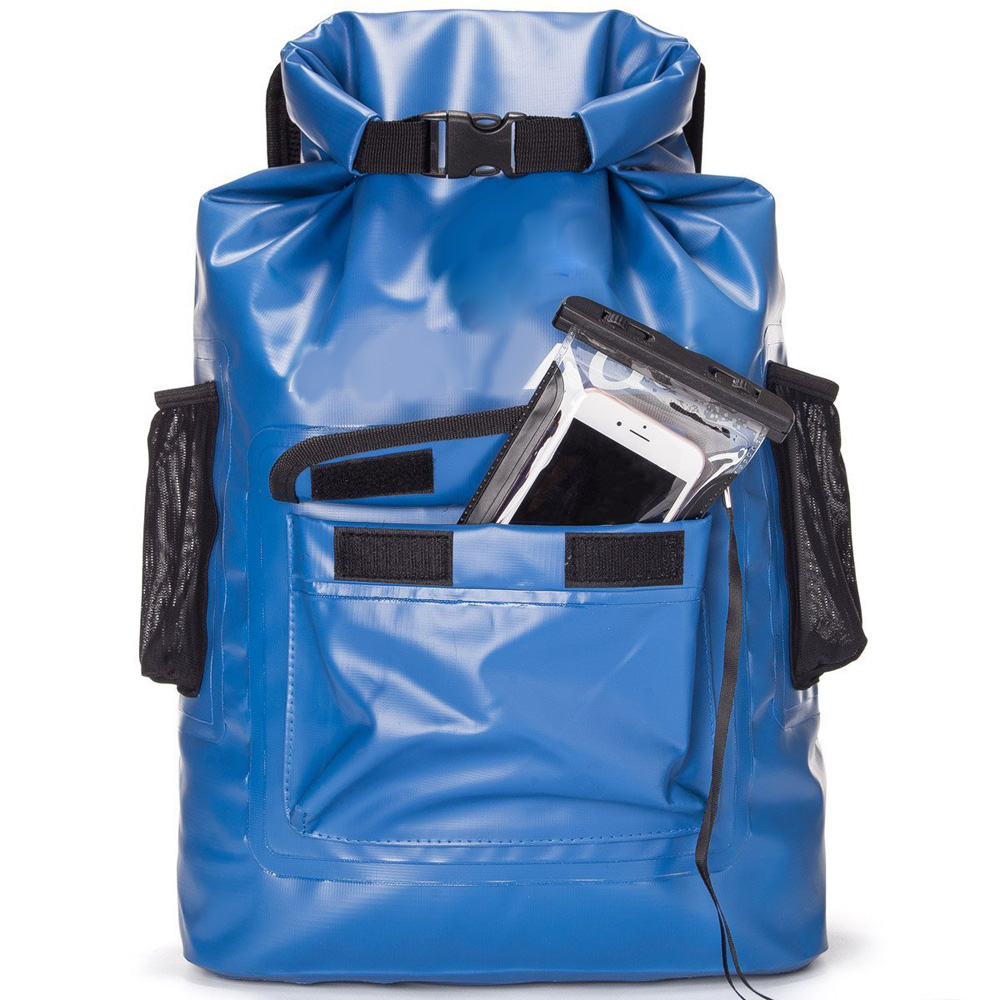 This backpack is made of high quality 500D PVC waterproof material. Double-stitched to reduce the weight on your shoulders. Lightweight Waterproof Foldable Backpack. Remains Watertight And Remaining Amazingly Flexible All The While Being Highly Durable. It holds your phones, camera, clothes, and documents, protecting them from water, sand, dust and dirt. Unique square lines & an exterior zippered pocket that can store small tools. Your dry bag backpack suits for various outdoor activities, such as hiking, camping, climbing, biking and water sports like floating, kayaking, swimming, boating, canoeing.