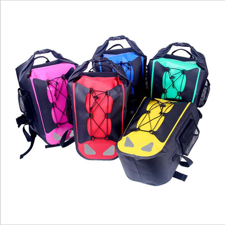 Waterproof dry bag backpack made of high quanlity pvc protects your gear and valuables from exposure to water; 25l volume allows for plenty of gear to be kept dry. Roll top buckle closure with a reinforced strap ensures items stay dry and doubles as a handle for easy transportation. Padded, adjustable shoulder straps, sternum strap, and padding on the back pack itself make it easy and comfortable to carry heavy loads. Includes mesh net side pockets for water bottles. Great, multi functional bag for all outdoor activities including boating, rafting, fishing, camping and hiking.Also works great for motorcycle riders