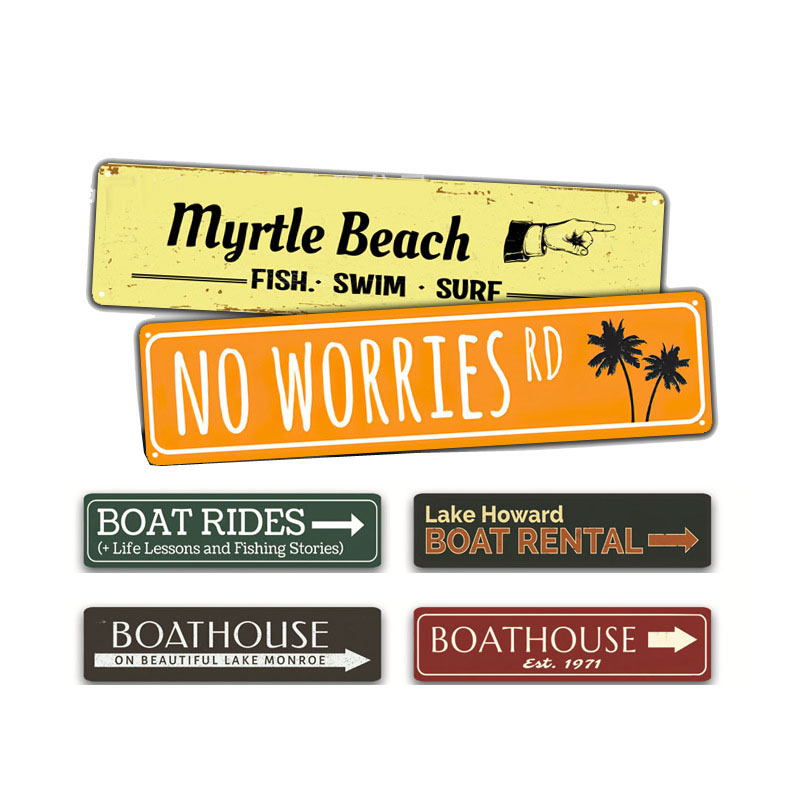 Retro vintage tin signs add nostalgic fun to home, garage, man cave, mechanics, auto services, bar, lounge, patio, cabin, basement, den, game/entertainment room, office or virtually any space.High quality print that will stand the test of time. Made of high-quality tinplate. Pre-drilled holes that you can be nailed or taped to the wall, or hang up with hemp cord or metal wire. We have many different shape for your choosing. Wecome your full color logo art printd on it !