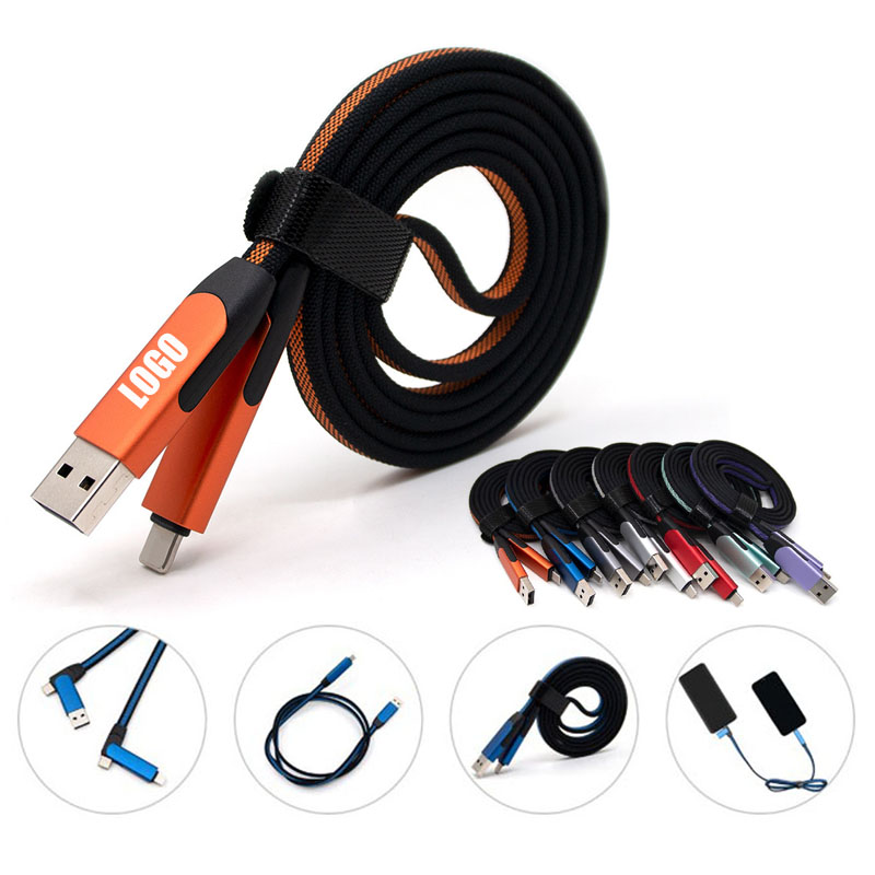 6 in 1 PD charging cable made of abric braided + Aluminum alloy, max current 3A, support fast charging and Support phone to phone charging and data transfer. 4 Connectors, 6 kinds charging style: USB To Micro; USB To iOS; USB To Type-C; USB Type-C To Micro; USB Type-C To iOS; USB Type-C To Type-C. Suitable for most smart phones and most digital products
