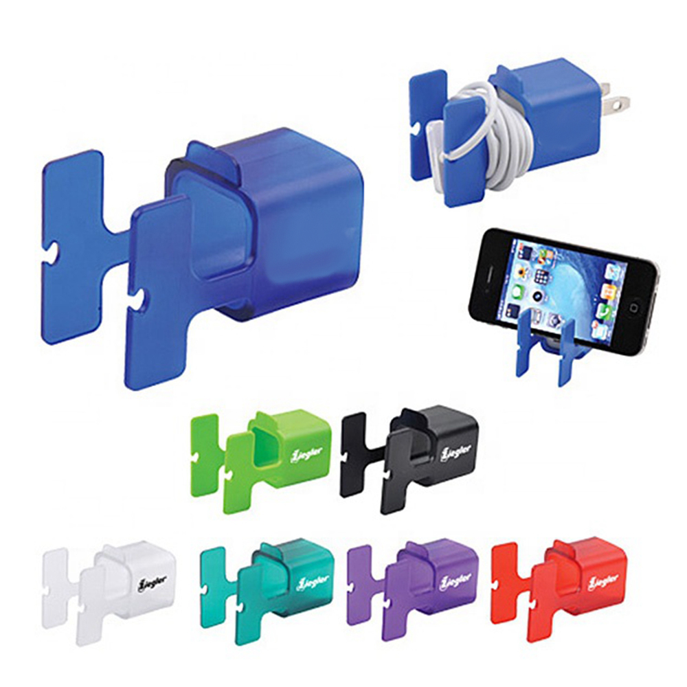 The Phone Stand & Cord Wrap Combo has unique design that allows it to function as both phone stand and cord wrap, even when you charge your phone. Multiple colors available. Additional cost apply for transparent ones.