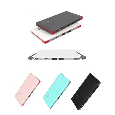This 10000 mAh Power bank has 2 built in cables which compatible with both Android and iOS systems. so you never need to bring extra cords with you. The large capacity gives you long lasting power in your trip. Input: 5V --- 2.0A (Micro USB) charging adapter not included. Output: 5V --- 2.4A.