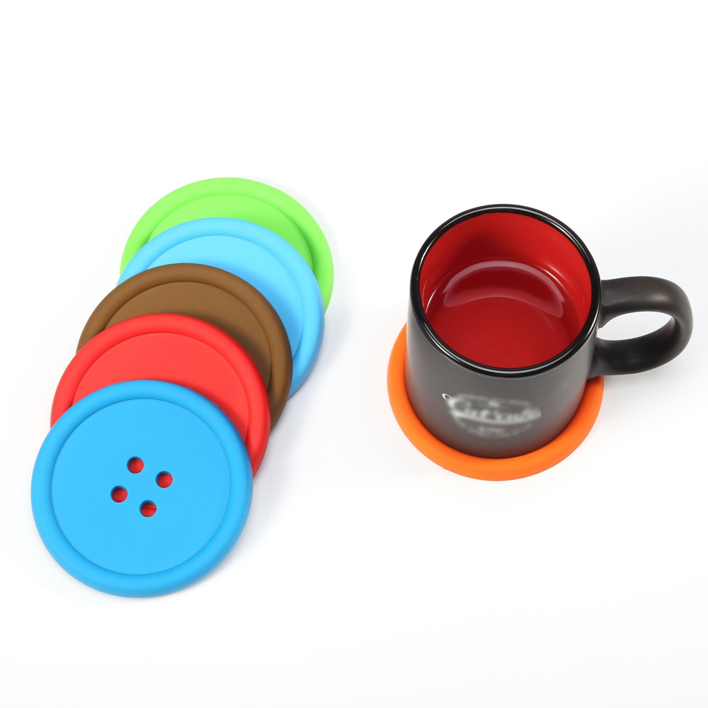 This product is made of silicone. It is very cute and environment-friendly. You can put your cup on it. What's more, it can protect you from being scalded. Smart design, button shaped and cute color make you see it quickly.
