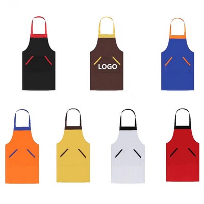 This apron is made of polyester and features one large front pocket. It is light, durable and waterproof. This apron is great for work, hotel chains, BBQ, cooking, catering, culinary schools, and grilling gatherings indoor and outdoor.