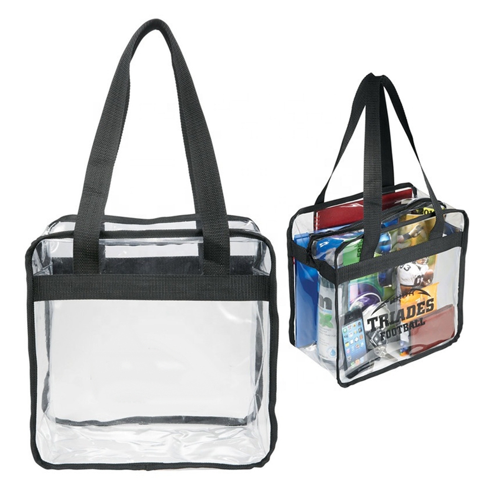 Prepare to impress with this clear zippered PVC tote bag. Our clear tote bag come with PVC 20silks thickness,22" handles and a zippered top closure. Also spot clean and air dry. Great clear tote bags with zipper for the beach, shopping, or any event! Available in multiple colors, this clear PVC bag can be printed with an imprint of your custom logo or design. Help your brand stand out with this unique product!