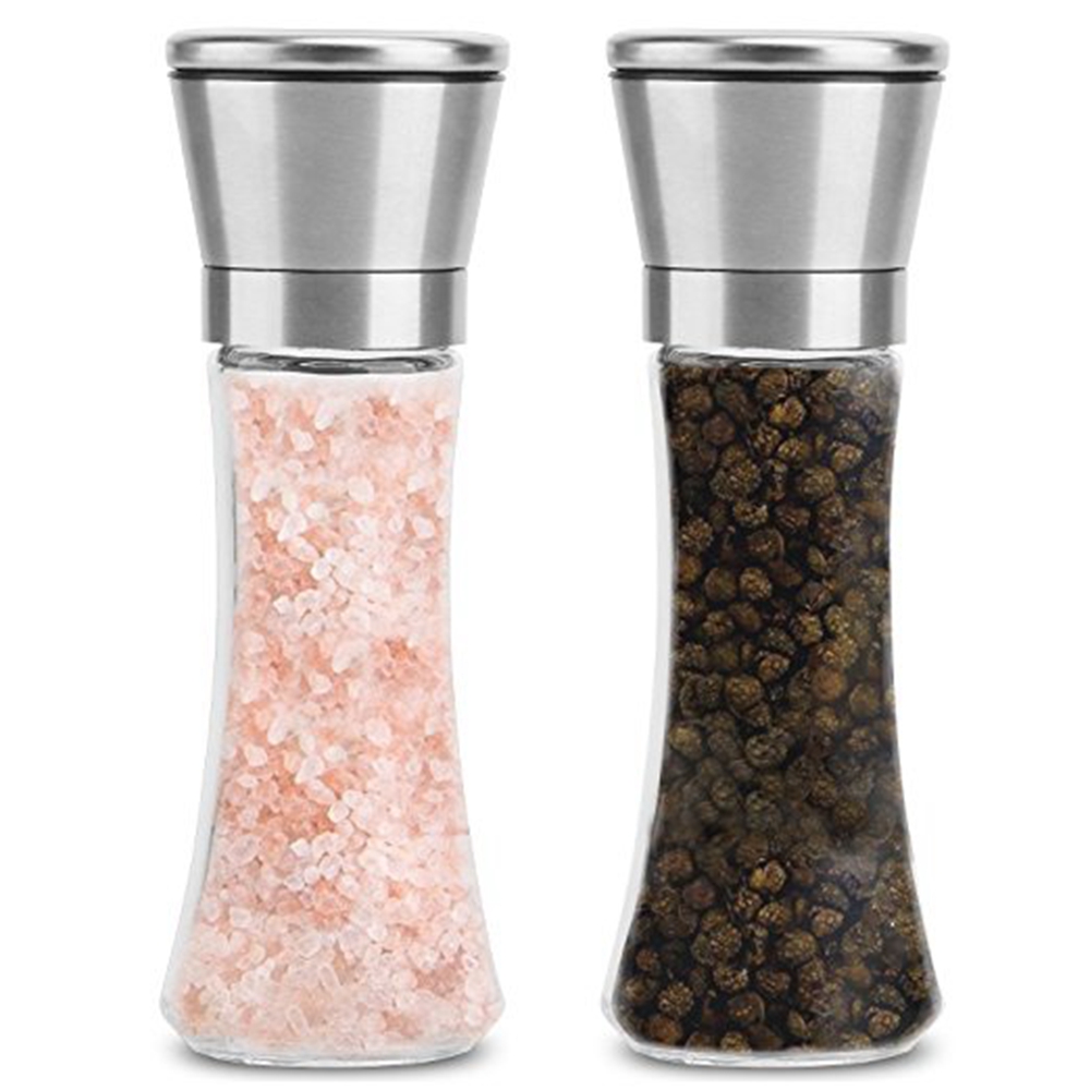 This grinder made of stainless steel top, a clear glass body and non-corrosive ceramic blades. The Ceramic grinding mechanism is covered with plastic to ensure safety.This grinder, easy grinding pepper, pepper, sesame and other spices. Perfect for a gourmet meal or dinner party. Great gift or party favor!